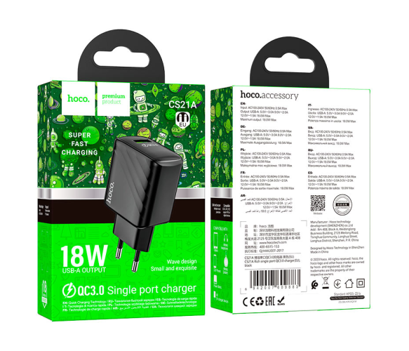 СЗУ HOCO CS21A, 18W, 1xUSB, QC3.0, Black, Box