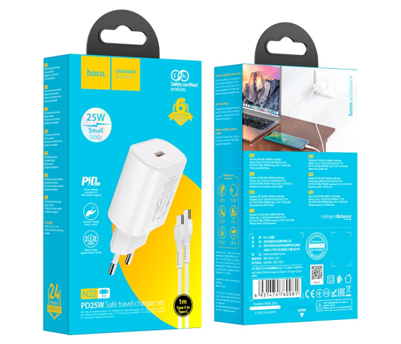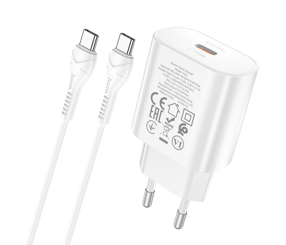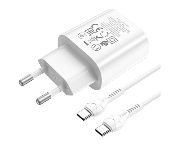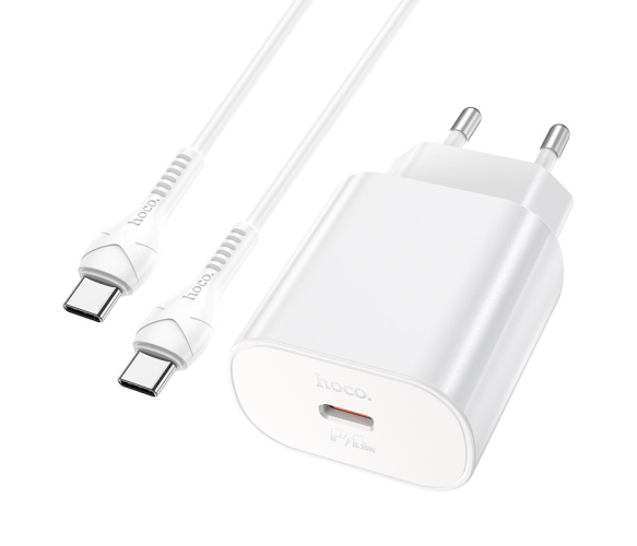 Набір СЗУ HOCO N22+кабель Type-C/Type-C, 1xUSB-C, PD25W, White, Box