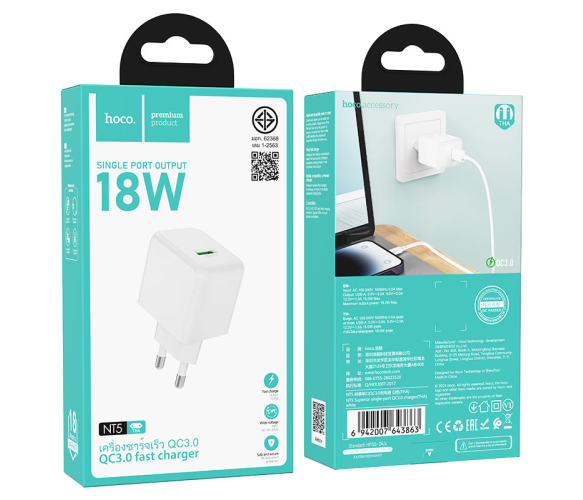 СЗУ HOCO NT5, 1xUSB, 18W, White, Box