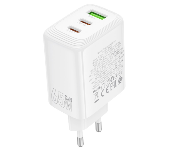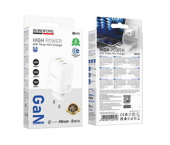 СЗУ BOROFONE BN32, 2xUSB-C+1xUSB, PD65W+QC3.0, White, Box
