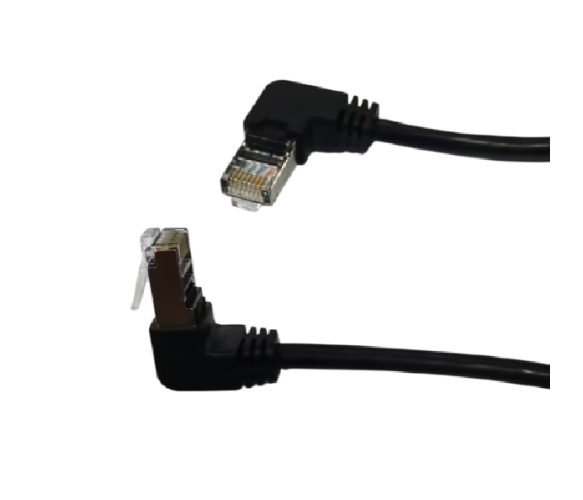Патч-корд литий FTP, RJ45(прямий/кутовий), екранований, FTP5e 0.29m, patch D=4.9mm AWG28 2x90° CU, чорний, Q200