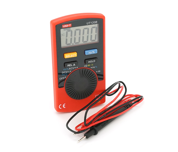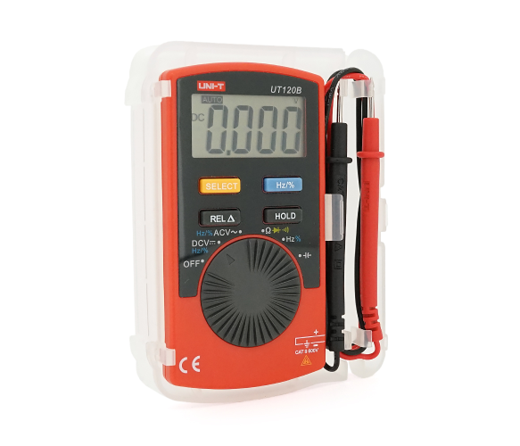 Мультиметр UNI-T UT120B: вимірювання V A Ω C Hz °C. Функції True RMS продзвінку тест діодів перевірка транзисторів. Габарити 110×58×11 мм