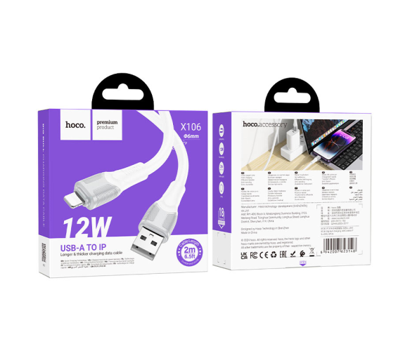Кабель Hoco X106, Lightning-USB, 2,4A, довжина 2м, White, BOX