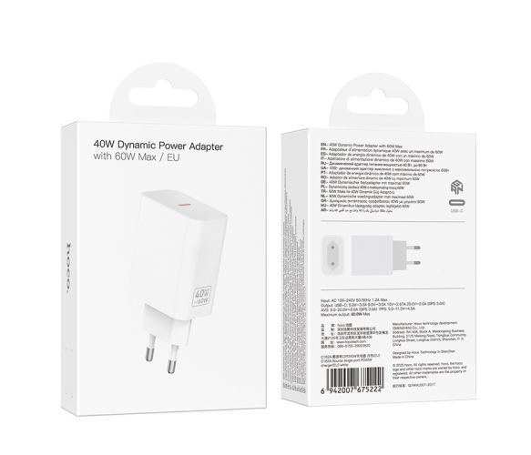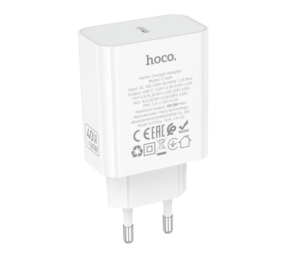 СЗУ 110-240V HOCO C162A 1xUSB-C, PD40W, White, Blister