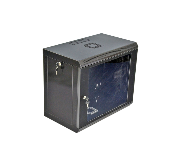 Опис: Шафа 9U, призначена для монтажу настінного обладнання, виконана з економічного матеріалу, з міцним акриловим склом та чорним кольором.
