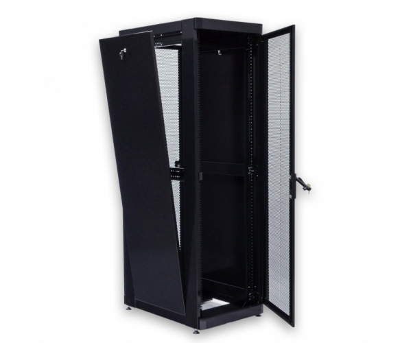 Цей масив є Шафу 19" 42U, розміром 610х1055 мм (висота*ширина), з посиленими перфорованими дверима (66%) в чорному кольорі.