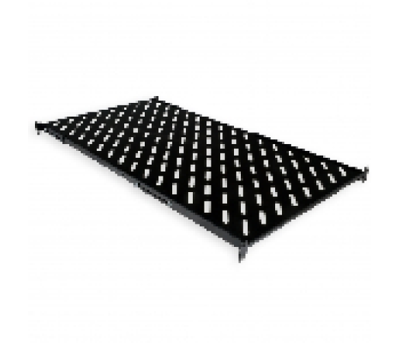 Опис: Полиця 19" з 4 точками кріплення, глибиною 850 мм, перфорована, зі сталі завтовшки 2 мм, чорного кольору.