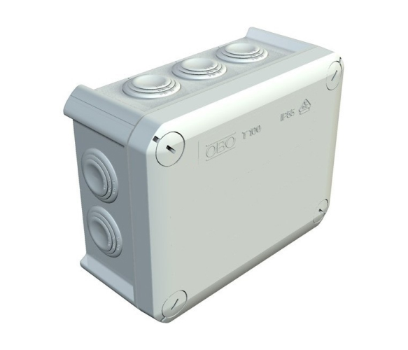 Коробка розподільна зовнішня Т100 150x116x67 IP66 OBO Bettermann колір білий - це універсальний пристрій, призначений для захисту електричних з'єднань від зовнішніх впливів. Вона має стандартний розмір 150x116x67 мм і має ступінь захисту IP66, що гарантує її надійний захист від пилу та вологи. Коробка виготовлена з міцного матеріалу і пофарбована в білий колір, що дозволяє легко вписатися в будь-який інтер'єр.