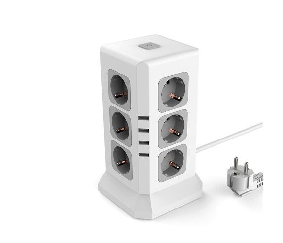 Мережевий фільтр SAFEMORE настільний, на 12 розеток + 4 USB виходи, 10A, 220-240V, 4000W, 2м, White