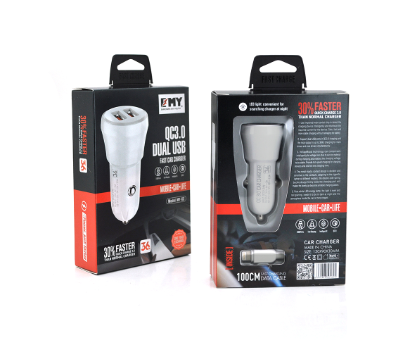 Набір 2 в 1 АЗУ With Iphone Cable DC12-24V MY-62, 2 x USB, 36W, Output: DC 3.6-6V / 3A 6-9V / 2A 9-12V / 1.5A, White, Blister- box, Q25