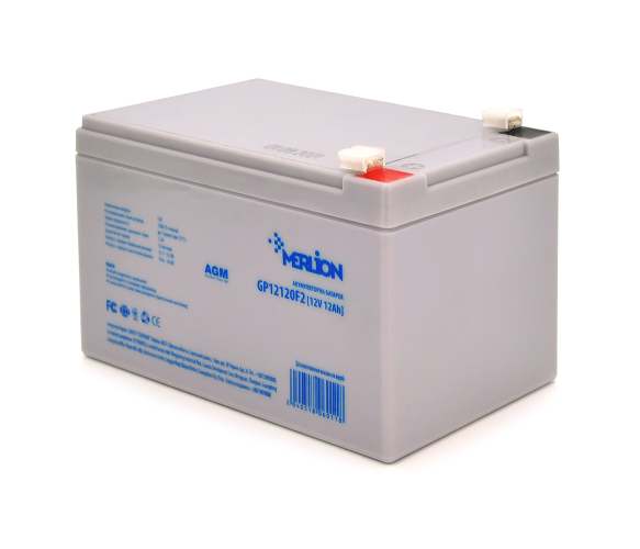 Акумуляторна батарея MERLION AGM GP12120F2 – правильна батарея для пристроїв з невеликим споживанням енергії. Міцний корпус, довгий термін служби, широкий спектр застосування - це акб MERLION!