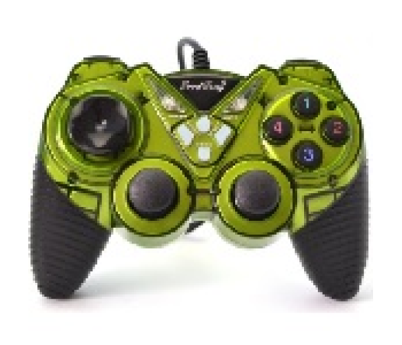 Опис: Геймпад USB-906 USB 2.0 Double Shock (зелений) призначений для використання на ПК. Він має провідне з'єднання і підтримує технологію Double Shock, що забезпечує додаткові тактильні відчуття під час гри.