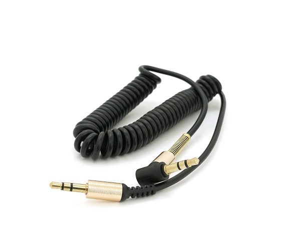 Опис: Кабель аудіо AUX DC3.5 тато-тато з довжиною 1.5 метра і пружиною, CCA стерео джек (круглий) чорного кольору, поставляється в коробці.