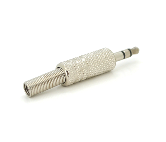 Опис: Роз'єм 3,5 стерео під кабель рифлений з пружиною (сірий метал)