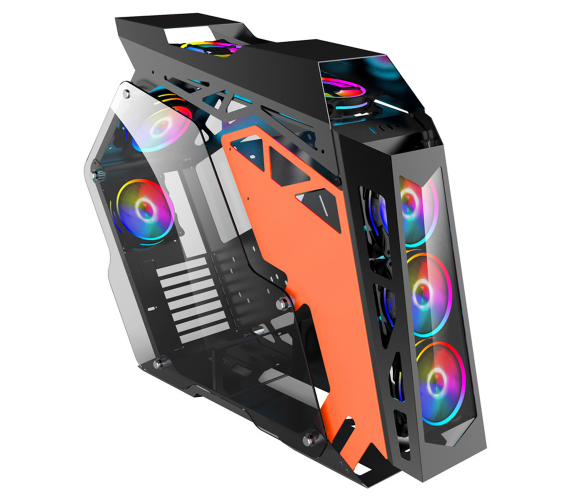 Корпус комп'ютерний, 0.8mm SPCC - матеріали високої якості разом із футуристичним дизайном, дозволять комплектуючим твого комп'ютера перебувати у безпеці та на своєму місці. Корпус металевий, панелі із міцного загартованого скла, за допомогою яких можна спостерігати нутрощі комп'ютера, безліч роз'ємів та відділень – все це для комп'ютера твоєї мрії!