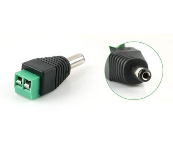 Роз'єм для підключення живлення DC-М – призначений для оперативного підключення живлення різного обладнання (систем відеоспостереження, живлення зарядних або інших побутових пристроїв) до джерела постійного струму 12/24В (DC). Монтаж можна здійснювати з різними типами кабелів: ШВВП, комбінований провід або кручена пара.