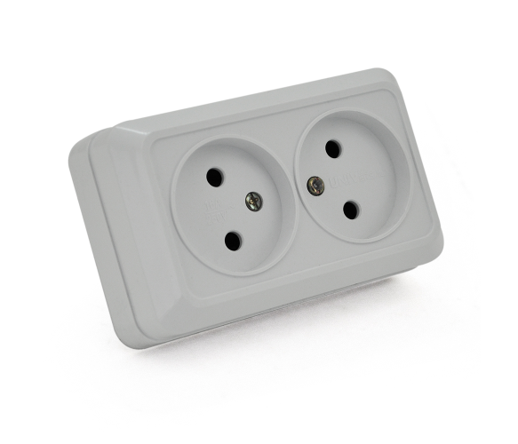 Розетка подвійна без заземлення зовнішнього монтажу O0102, біла, Q14,