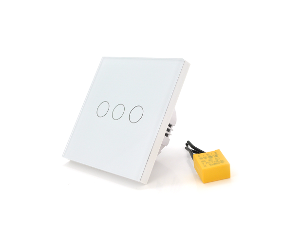 Це 3-канальний настінний вимикач, який дозволяє керувати освітленням та іншими пристроями за допомогою Інтернету та голосових команд.