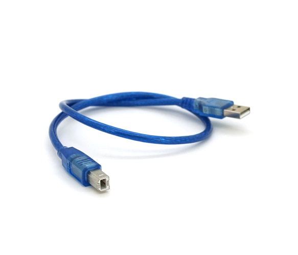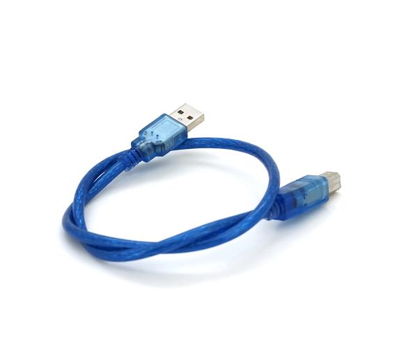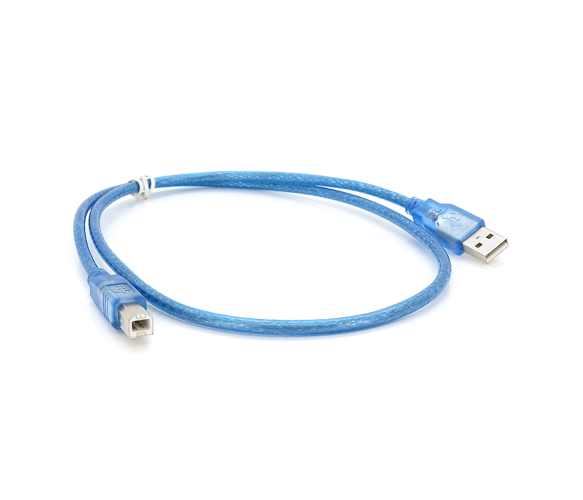 Компактний кабель USB для підключення периферійних пристроїв з роз'ємом Type-B. Коротка довжина 0,5 метра забезпечує акуратне підключення без зайвих проводів, а прозорий синій корпус додає сучасний стиль робочому місцю.