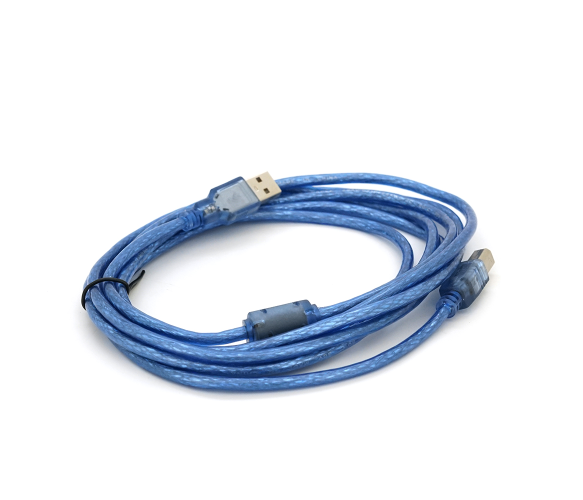 Цей кабель USB 2.0 має роз'єм типу A Male і B Male, що дозволяє підключати пристрої з різними роз'ємами. Довжина кабелю становить 3.0 метри, що забезпечує зручність при підключенні пристроїв на великій відстані. Присутність фериту на кабелі допомагає у зниженні перешкод та електромагнітних інтерференцій. Колір кабелю – прозорий синій.