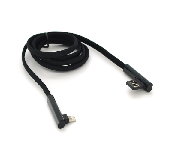 Спеціалізований кабель для пристроїв Apple з роз'ємом Lightning, що підтримує технологію швидкого заряджання. Кутова конструкція рознімання забезпечує зручне підключення в обмеженому просторі.