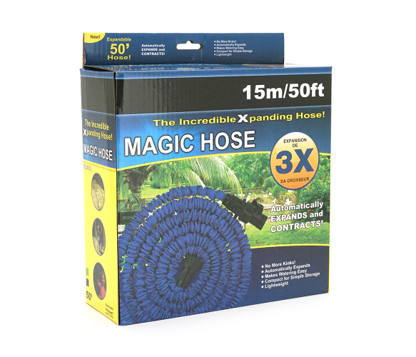 -розтягується в довжину при постукпленні води; -Автоматично повертається у вихідний розмір; -Не перекручується, не заламується, не плутається; -Надміцний та зносостійкий; -Дуже легкий і компактний