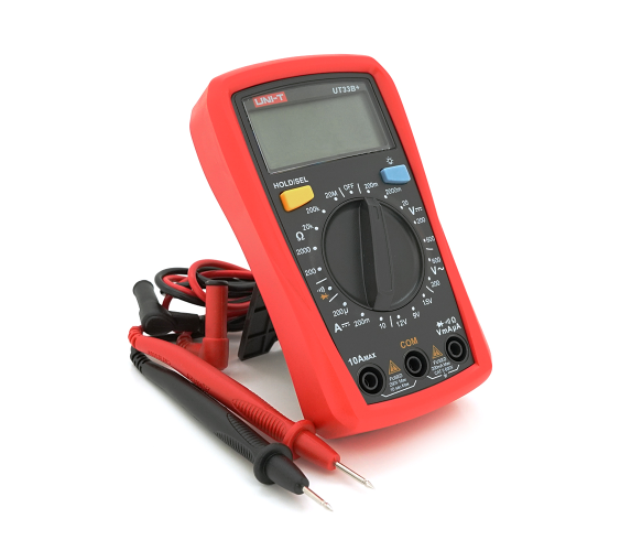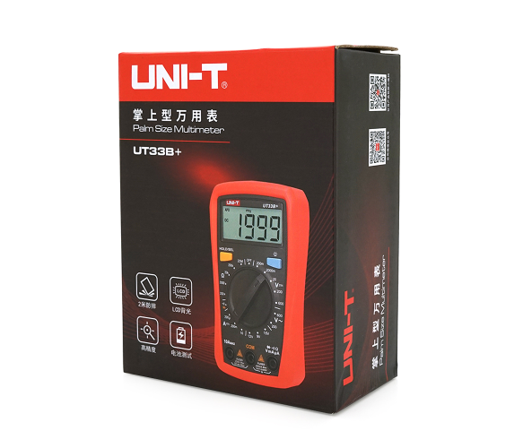 - Комплектація: Мультиметр UNI-T UT33B, вимірювальні щупи, 2 батареї ААА, інструкція.