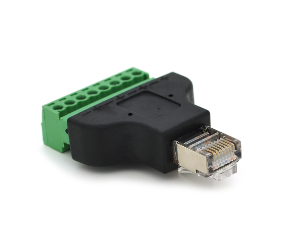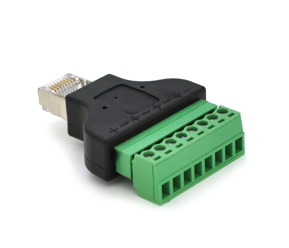 Клемна колодка 8-розрядна Клемна колодка 8-розрядна + RJ45 8P8С папа - перехідник для передачі сигналу за допомогою крученої пари між пристроями, у одного з яких немає роз'єму RJ45.