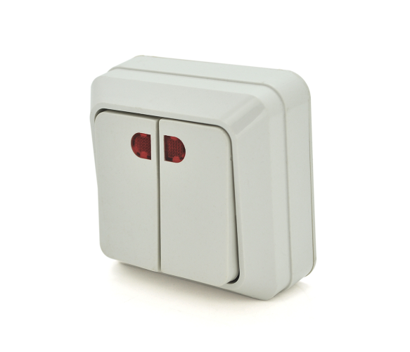 Опис: Вимикач подвійний зовнішнього монтажу O0023, колір білий.Характеристики:1. Тип: подвійний вимикач2. Монтаж: зовнішній3. Модель: O00234. Колір: білий