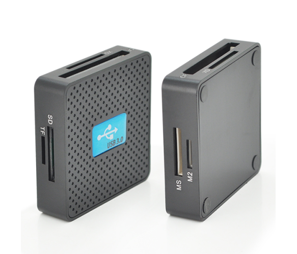Технічні характеристики:Кардрідер універсальний HDH-939Тип читання карт: SD/MMC/MS/TF/M2інтерфейс USB3.0Тип матеріалу: пластикКолір: чорнийТип упаковки: Блістер