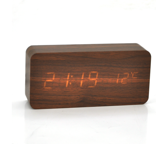 Електронні прямокутні годинник з будильником, бамбуковий, коричневий