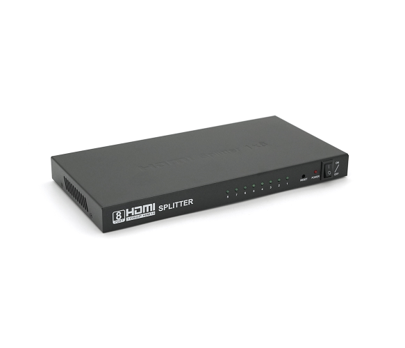 Активний HDMI сплитер 1 => 8 порту - компактний, багатофункціональний пристрій. Призначений для передачі відео і аудіо сигналу з одного пристрою на 8 моніторів, телевізорів або проекторів. Часто даний сплитер застосовується в торговельних залах, магазинах електроніки, в відеоспостереження, але область застосування широка, так що використовуй пристрій як знаєш. Висока якість передачі сигналу, підтримка множин форматів відео і аудіо, надійне якість, все це в такому маленькому пристрої.