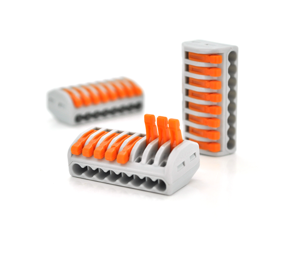 Опис: Клема з натискними затискачами 8-провідна WAGO K222-418 для розподільних коробок, 8-pin, сіро-жовтогаряча.