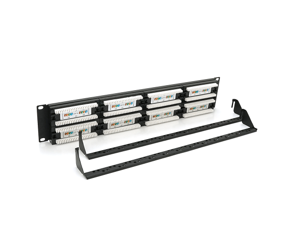 Патч-панель - призначена для того, щоб побудувати структуруванню кабельну систему і створити якісне комутаційне з'єднання між пристроями і мережевим обладнанням. Встановлюється в телекомунікаційну шафу і легко і просто все з'єднає, без заплутування кабелів. Конектори фіксуються міцно та не випадають.