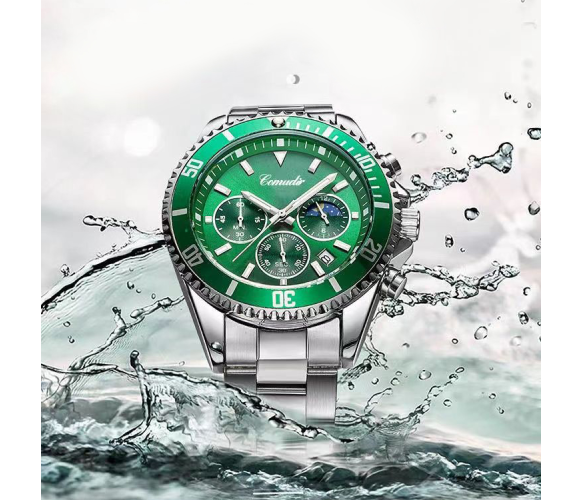 Чоловічий годинник Comudir є механічним, водонепроникним годинником з корпусом діаметром 40 мм і товщиною 11 мм. Вони оснащені функцією відображення дати, індикатором дня/ночі та стрілками, що світяться.