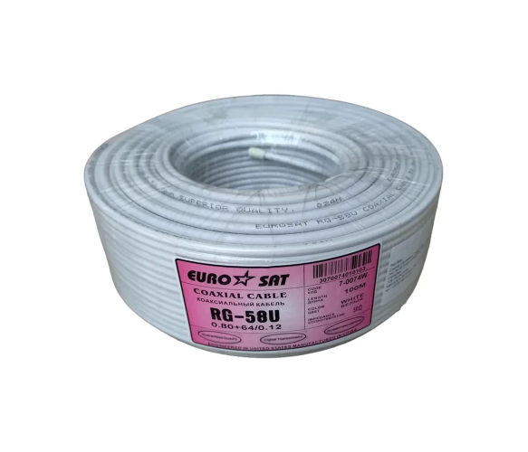Кабель RG-58U, CU, білий, 100м має наступні характеристики:
