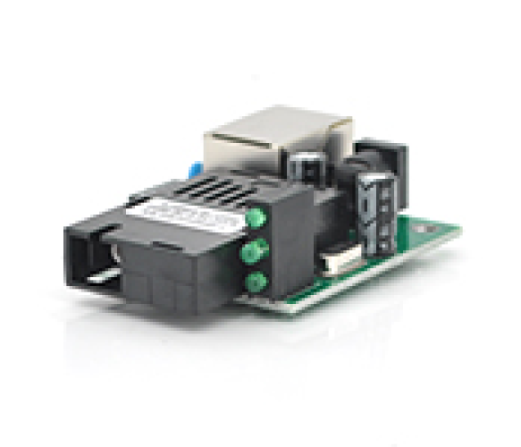 Плата-медіаконвертер одноволоконний Merlion mini A 155М-SC-3.3V, що використовується для перетворення сигналу і подальшого з'єднання оптоволоконного кабелю 100 BASE-FX із кручень парою 100 Base-TX і навпаки.
