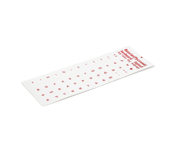 Прозорі наклейки на клавіатурі з червоними літерами Рус. для зручності набору тексту російською мовою.