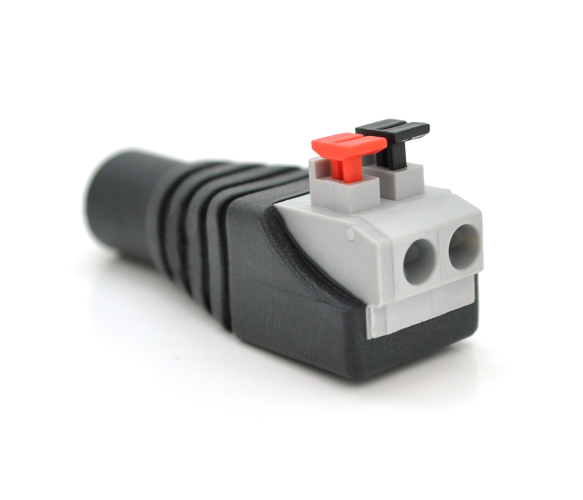 Роз'єм для підключення живлення DC-F - призначений для оперативного підключення живлення різного обладнання (систем відеоспостереження, живлення зарядних або інших побутових пристроїв) до джерела постійного струму 12/24В (DC). Монтаж можна здійснювати з різними типами кабелів: ШВВП, комбінований провід або кручена пара.