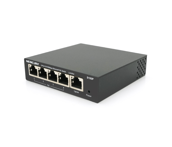 - Кількість портів: 4 порти POE + 1 порт Ethernet (Uplink).